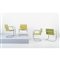 Quattro poltrone modello “Brno Tubolar Model” con struttura in tubolare di acciaio cromato e curvato, spalliera e seduta con imbottitura e rivestimento verde kiwi.