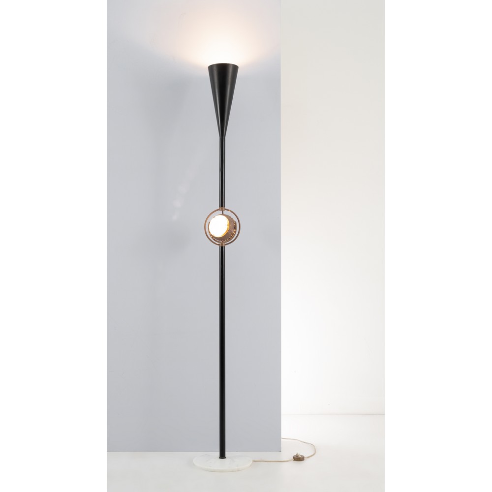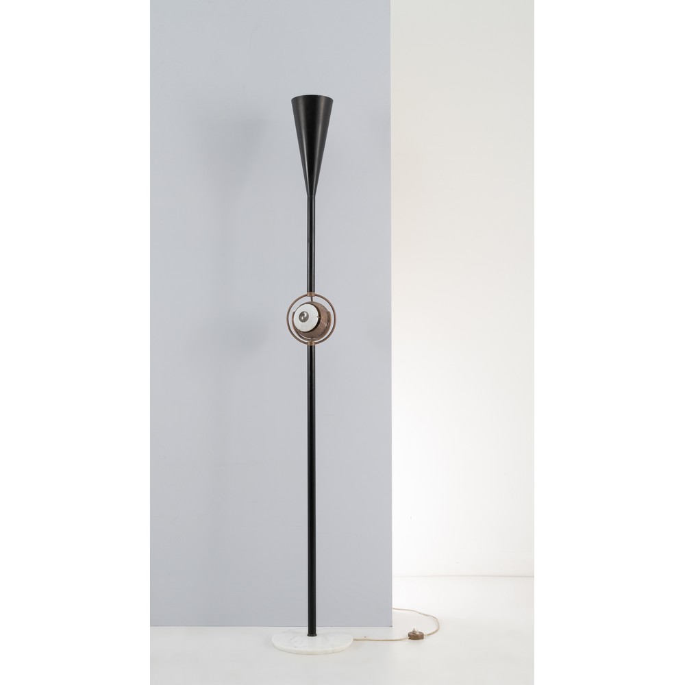 Lampada da terra a due luci modello "Polifemo 12555", metallo laccato con base in marmo, ottone e perspex.