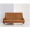 Divano a due posti con struttura in legno e imbottitura, rivestimento originale in velluto color marrone e piedini a spillo in ottone.