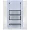 Mobile espositore modello “Zenit” serie “Libreria a montante”. Struttura in alluminio verniciato nero con sistema di aggancio a baionetta in alluminio privi di fori o attacchi prefissati, due vani contenitori in vetro trasparente con ante scorrevoli, una mensola in vetro.