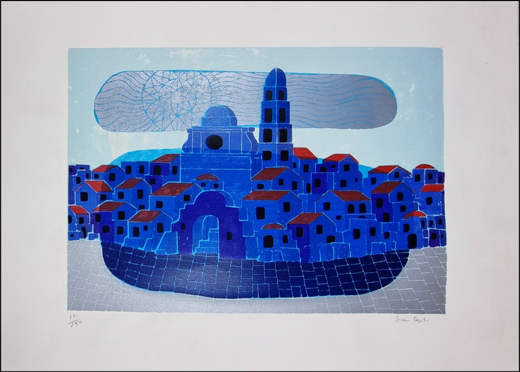 CAPUTO TONINO Lecce 1933 - 2021 "Paesaggio mediterraneo" Serigrafia su cartoncino cm 70x50, del 1984. Firmata sul fronte in basso a destra, tiratura 121/150 a sinistra. Sul retro timbro della Galleria Leonardo Arte.