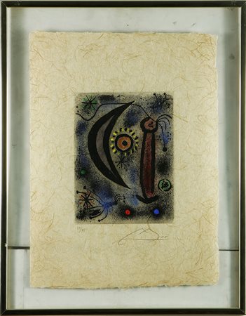 MIRO' JOAN (1893 - 1983) Senza Titolo. Linoincisione . Cm 24,00 x 31,70. Tiratura 33/75 . Cornice presente
