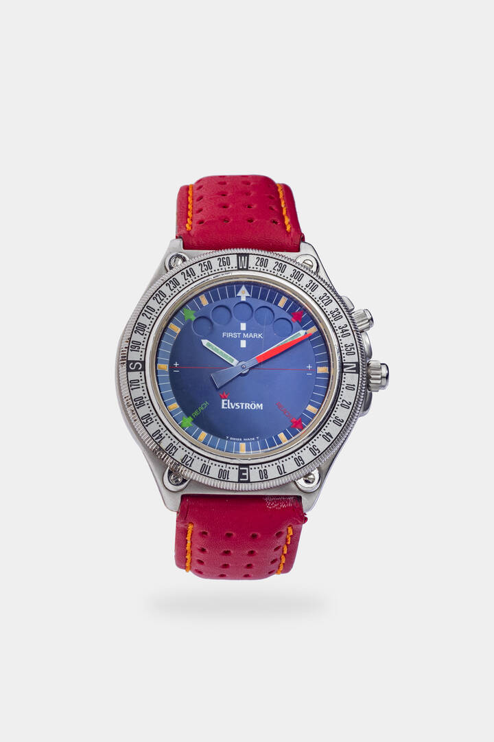 Cassa in acciaio con fondello a vite. Quadrante blu con indicazioni tempistiche di regata al 12.