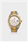 Cassa in acciaio con lunetta in oro giallo godronata. Quadrante argento con indici geometrici applicati. L’Oyster Perpetual Sky-Dweller permette ai viaggiatori di leggere simultaneamente l’ora di due fusi orari. Quando si viaggia, l’ora di riferimento è visualizzata su un disco girevole decentrato in formato 24 ore; ed è indicata tramite un triangolo rosso fisso. L’ora locale è indicata tramite le tradizionali lancette delle ore.