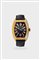 Cassa in oro rosa, di forma. Quadrante nero con numeri arabi applicati e datario al 6.