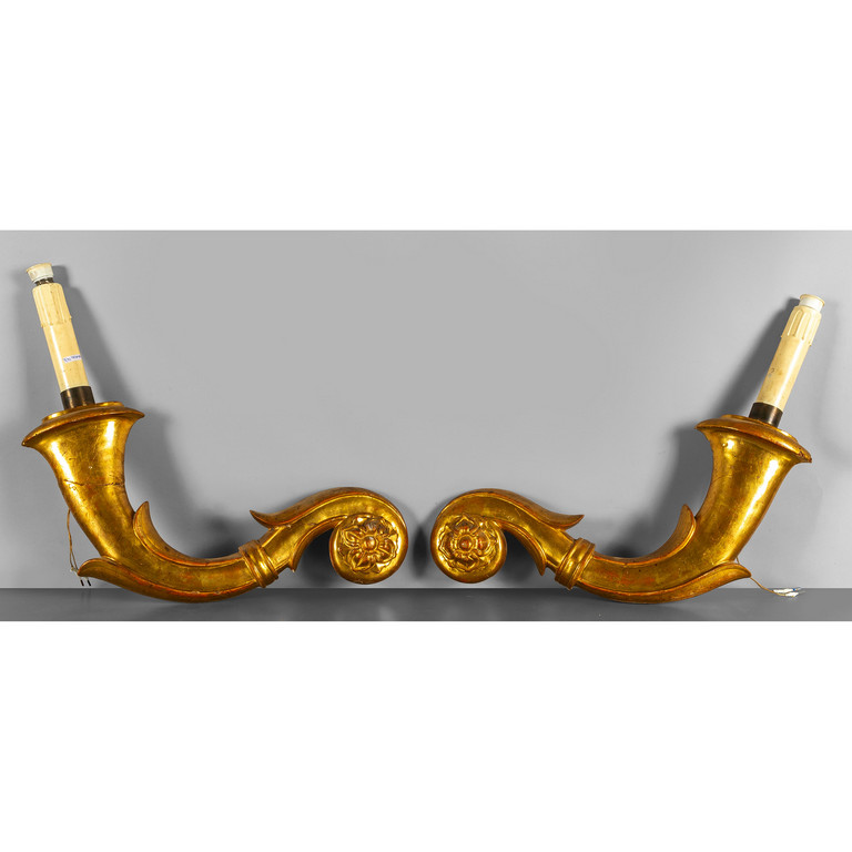 Coppia di cornucopie in legno intagliato e dorato sec.XIX