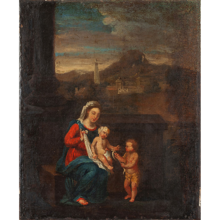 'Madonna con Bambino e San Giovannino' olio sec.XVIII