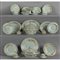 Grande servizio di piatti Liberty in porcellana di Ginori decorato in oro con rami e uccellini su fondo blu e celeste fine sec.XIX composto da: 91 piatti piani 27 piatti fondi 39 piatti frutta coppia di grandi zuppiere una zuppiera più piccola coppia di alzate frutta otto alzatine otto raviere coppia di salsiere con coperchio e un mestolo quattro piccole mostardiere con tre cucchiai coppia di piatti da portata rotondi e due diversi ovali diciotto tazzine da caffè con ventidue piattini quattro tazze da consommè con quattro piattini (sbeccature)