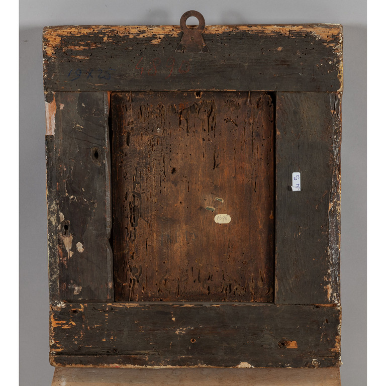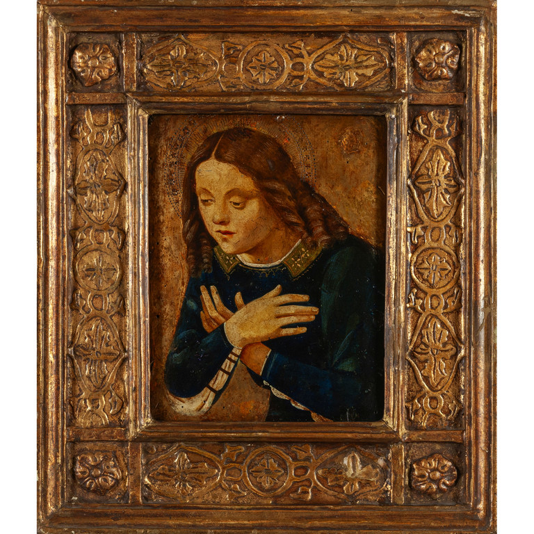 'Ritratto di Santo' olio a fondo oro di gusto rinascimentale cornice in legno intagliato e dorato