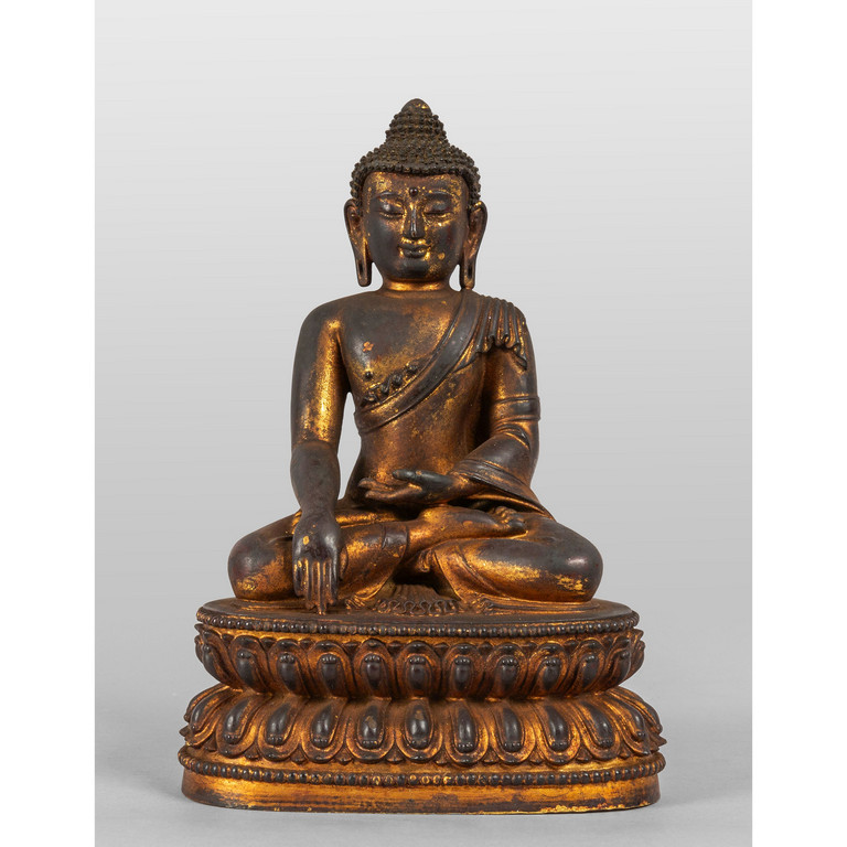 Budda Testimone della terra scultura bronzo con tracce di doratura