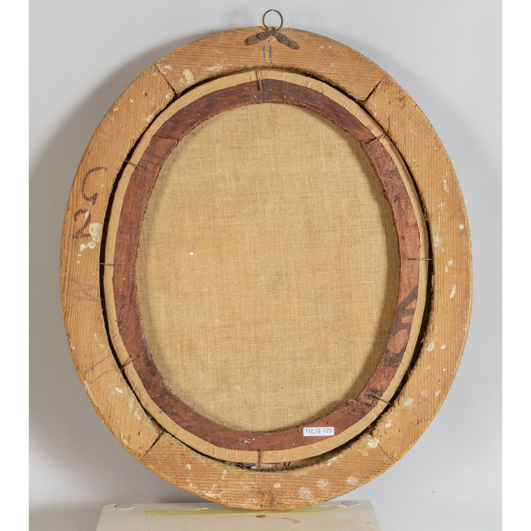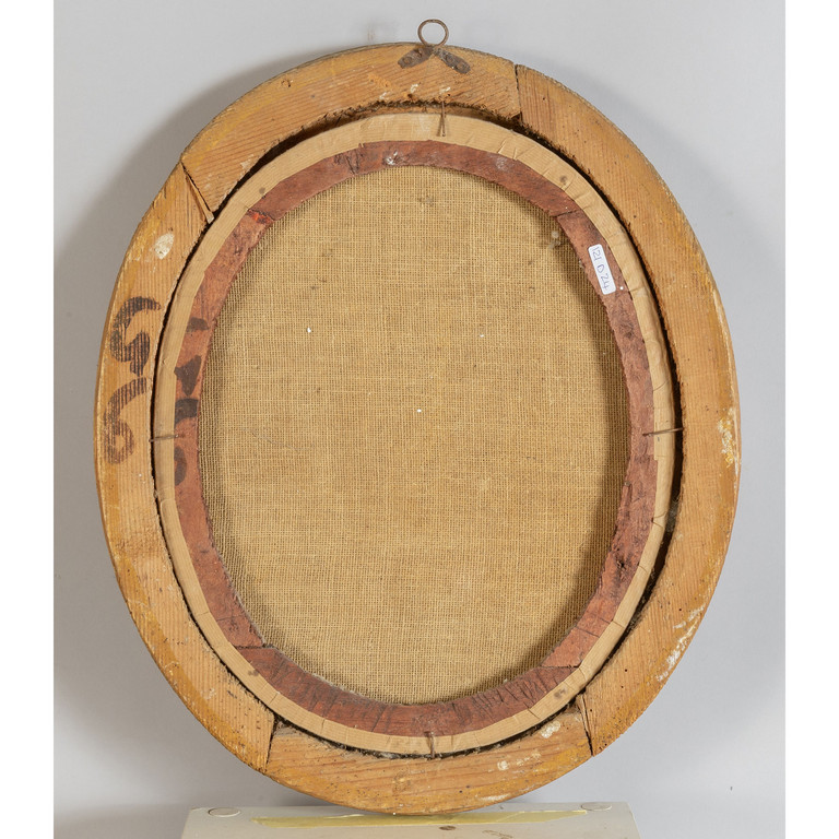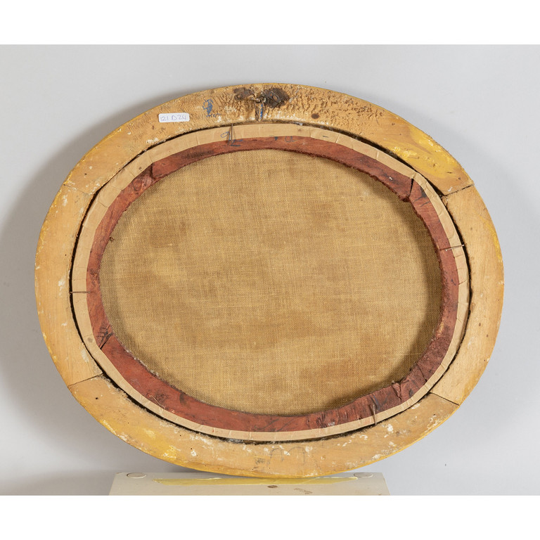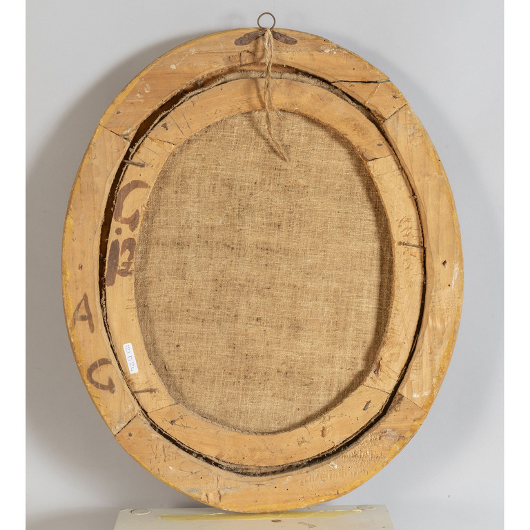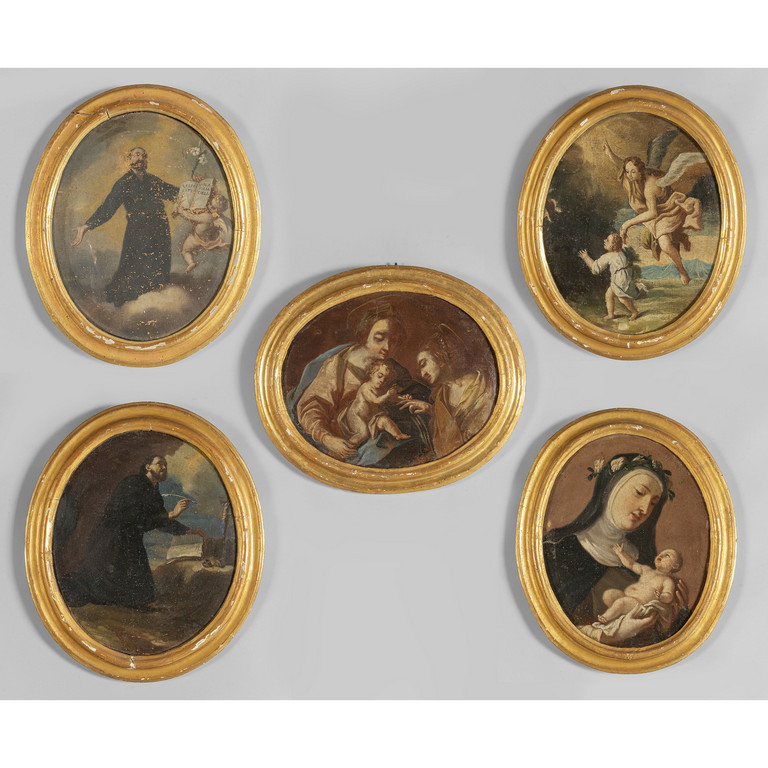 Scuola italiana sec.XVIII 'Scene Sacre' cinque dipinti ovali di cui uno orizzontale e quattro verticali cornici coeve in legno intagliato e dorato