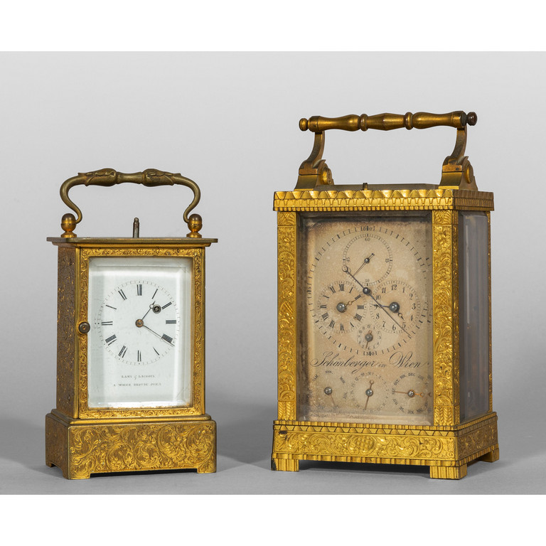 Officier in bronzo dorato inciso con datario e calendario Vienna sec.XIX (h.cm.13) piccolo officier Francia sec.XIX (h.cm.11) e officier in bronzo dorato