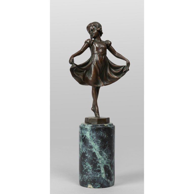 Ballerina scultura in bronzo poggiante su base in marmo s.ta alla base