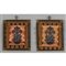 Coppia di cornicette in legno dorato ed ebanizzato con fiorellini in rilievo all'interno acquasantiera in argento sec.XVIII