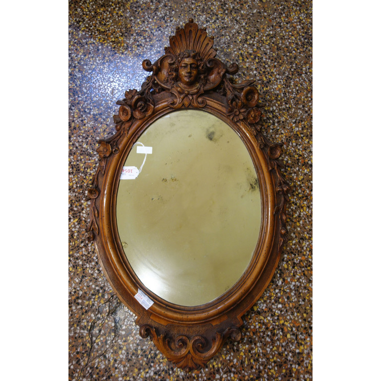 Specchiera Luigi Filippo di forma ovale in legno intagliato
