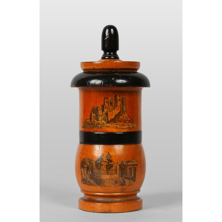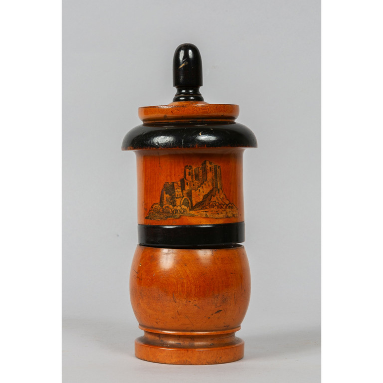 Macinaspezie in legno pirografato Francia sec.XIX