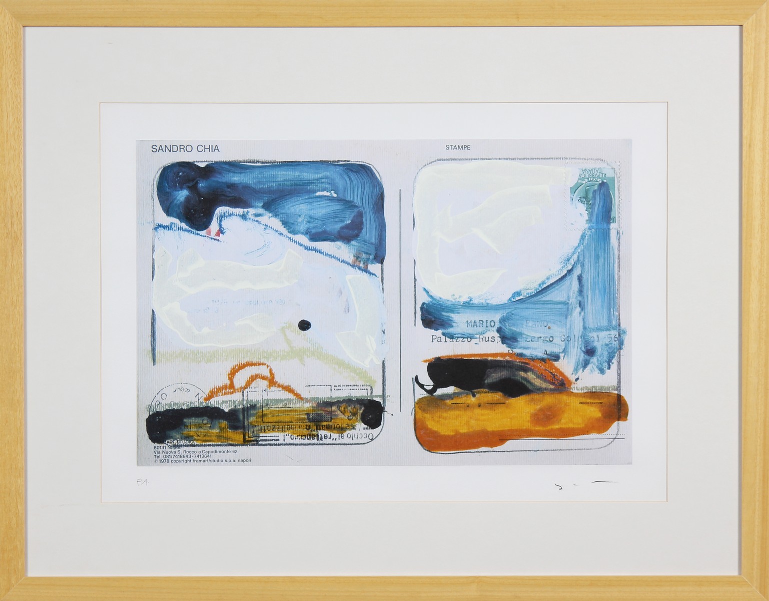 SCHIFANO MARIO (1934 - 1998) Senza titolo. Serigrafia. Cm 45,00 x 65,00. P.d.a. a matita in basso a sinistra. Firma a matita in basso a destra. Cornice presente