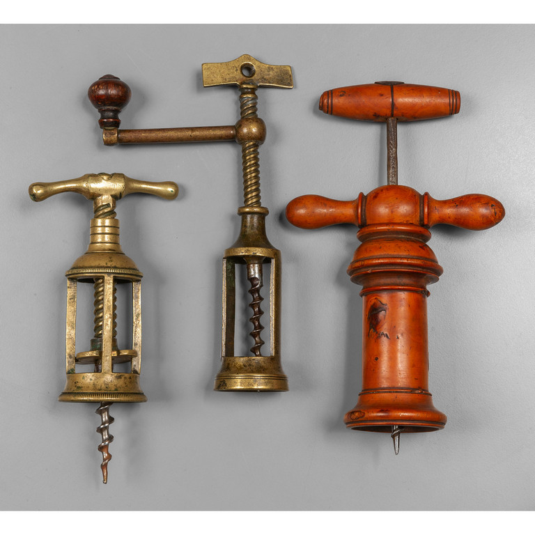 Tre cavatappi uno in bosso con vite interna in perfetto stato e due in bronzo di cui uno a manovella