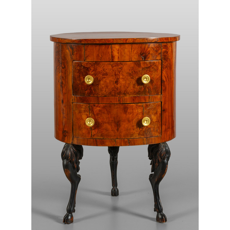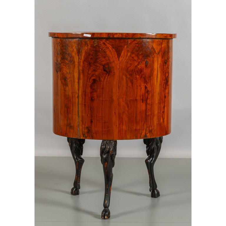 Comodino da centro in ulivo e radica di forma cilindrica gambe zoomorfe Veneto inzi sec.XIX