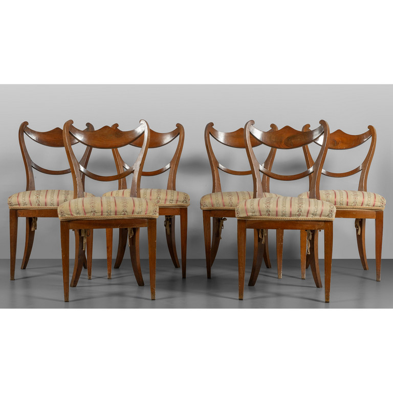 Sei sedie Carlo X in ciliegio con schienale a gondola Toscana sec.XIX