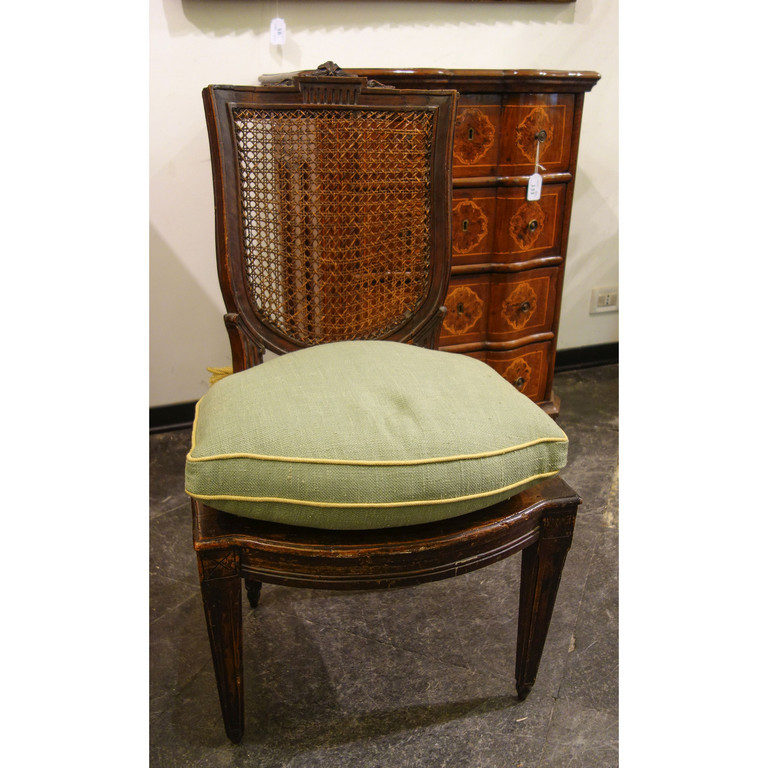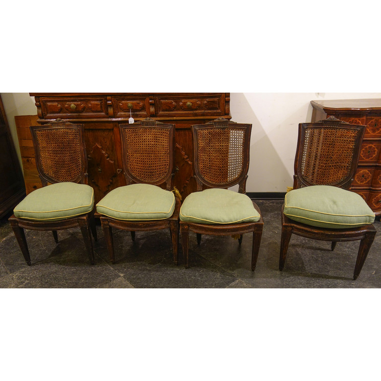 Quattro sedie Luigi XVI in noce con schienale a scudo Genova II metà sec.XVIII difetti al cannè