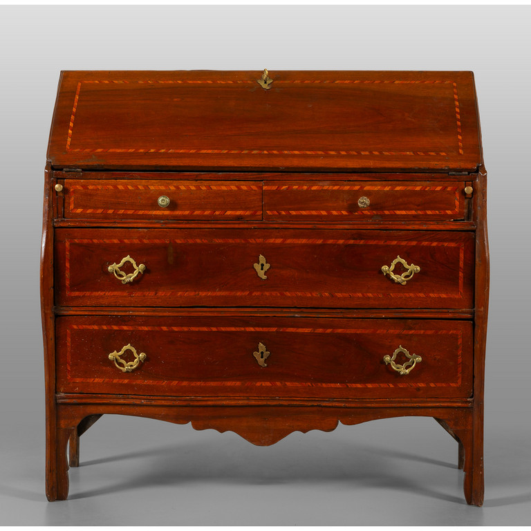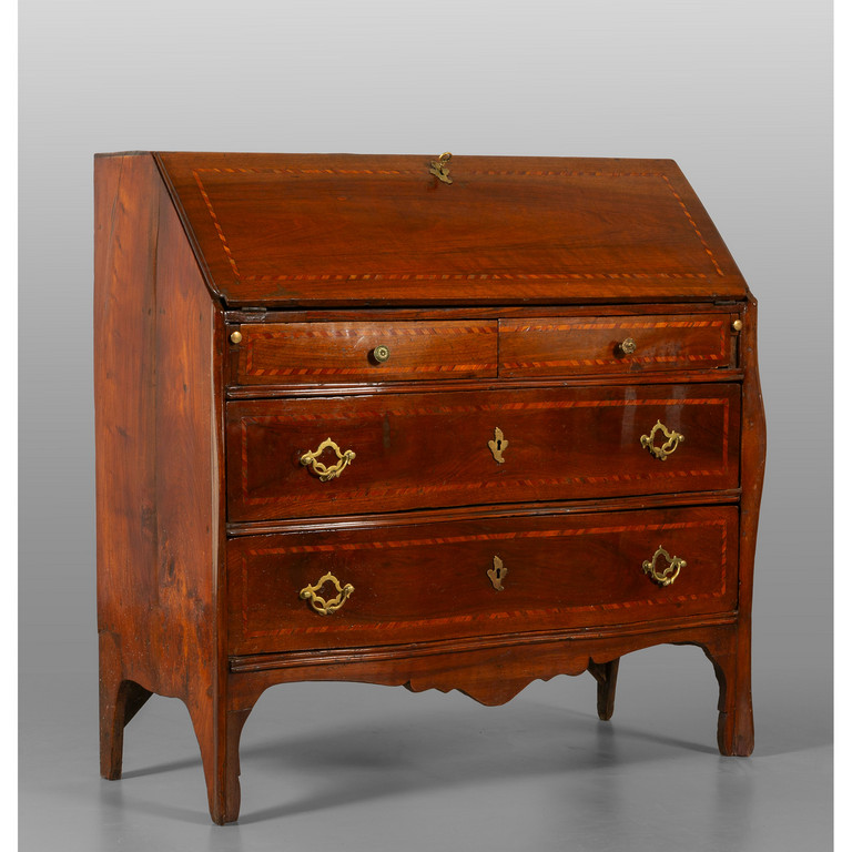 Ribalta Luigi XIV in noce e abete filettata in legni esotici due cassetti e due cassettini Genova metà sec.XVIII