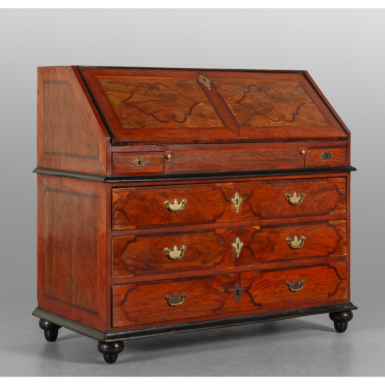 Ribalta Luigi XIV lastronata in ulivo e filettata in palissandro tre cassetti grandi più due piccoli Genova sec.XVIII