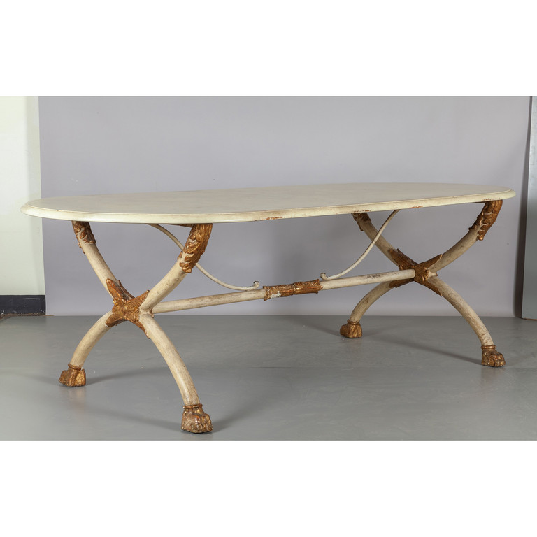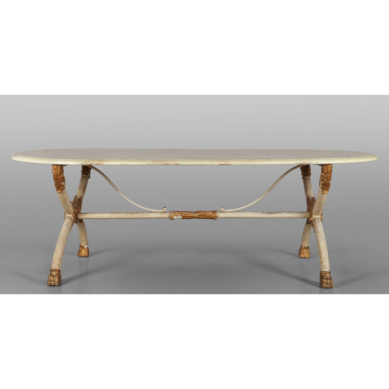 Tavolo neoclassico da pranzo in legno intagliato dorato e laccato con piedi a forma di zampa di leone sec.XIX
