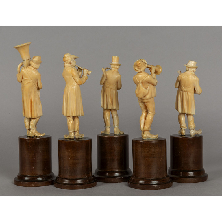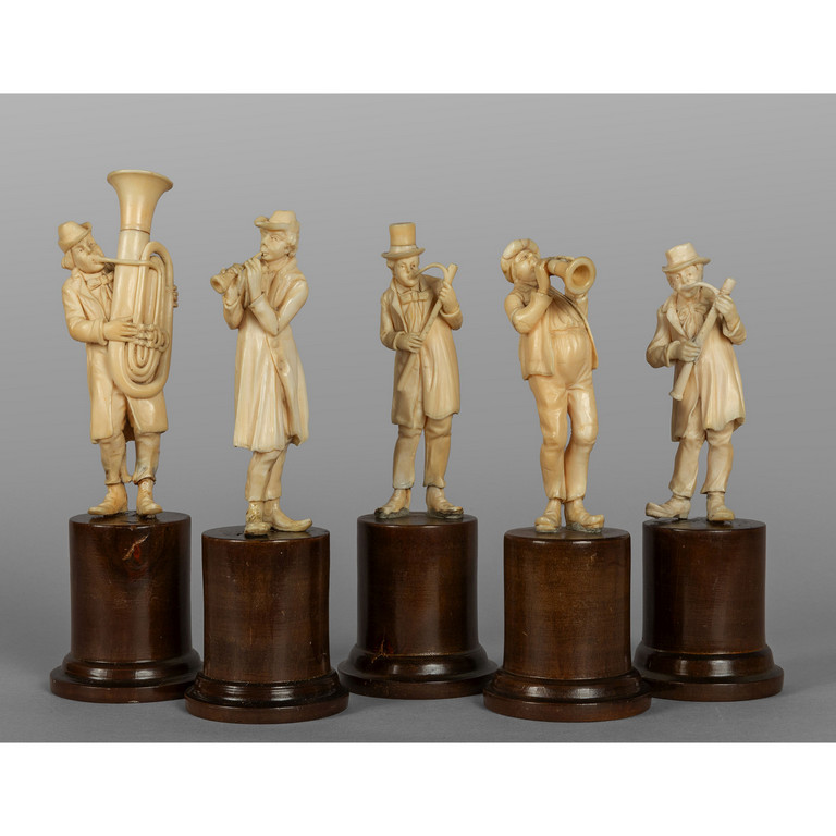 Concertino gruppo di cinque sculture in avorio intagliato sec.XIX