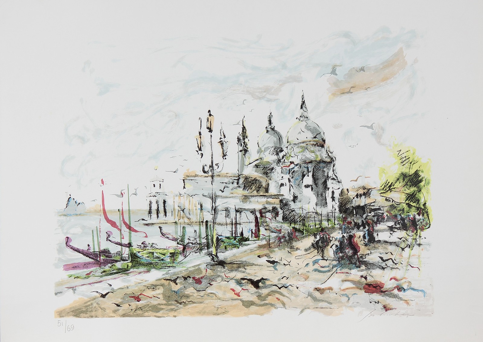 ARTISTI VARI Cartella composta da n. 8 Grafiche di artisti vari. Litografie. Cm 65,00 x 86,00. Tutte litografie e un'acquaforte.