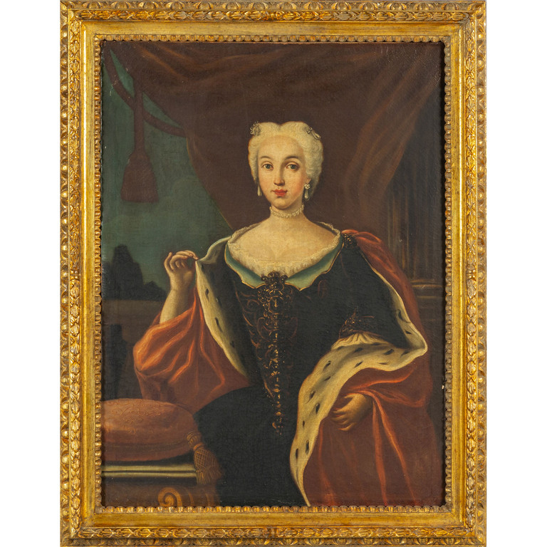 Scuola francese sec.XIX 'Ritratto di nobildonna con orecchini e collana di perle' olio