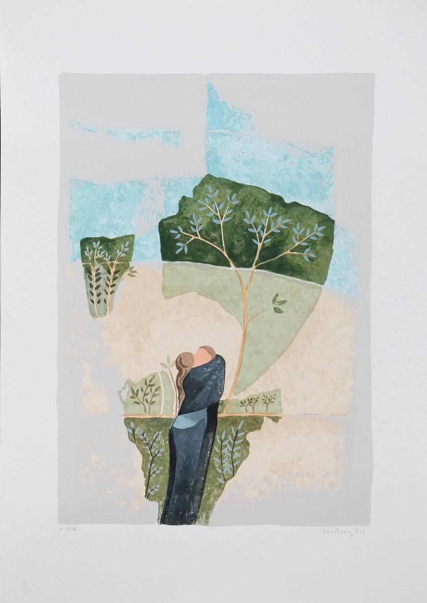 ARTISTI VARI Cartella composta da n. 4 Grafiche. Litografia. Cm 80,00 x 110,00. Trombini,137/150, Tiratura e firma a matita, Cm 35x99.5; N.2 Alinari, 135/200 e XCIX/C, Firma in basso a destra,al retro Certificato di autenticità di Colombo Arte Edizioni, Milano e relativo numero di Archivio, anno 2003, Cm70x70; Leo Borghi, p.d.a. ,Firma e tiratura a matita, Cm 74.5x52.