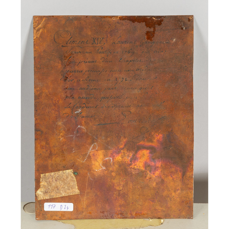 'Clemente XIV' olio su rame sec.XVIII nul retro antica iscrizione