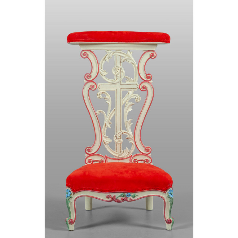 Inginocchiatoio umbertino in legno laccato bianco sec.XIX