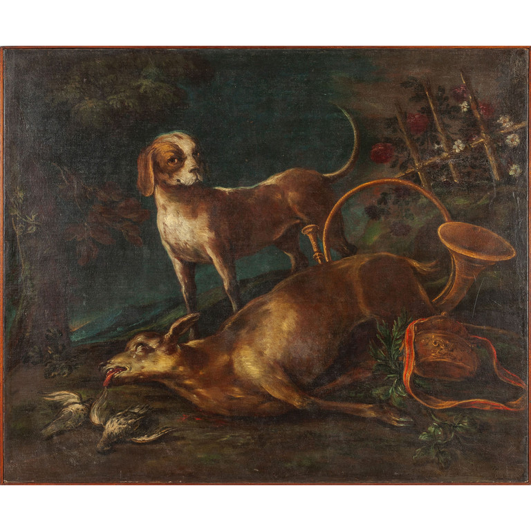Scuola italiana sec.XVIII 'Cane con selvaggina' olio