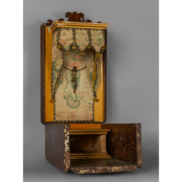 Altarolo portatile con all'interno Cristo in bronzo del sec.XVIII