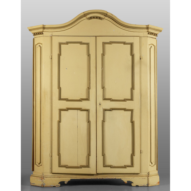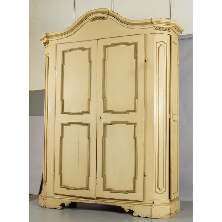 Grande armadio Luigi XIV a due ante con montanti scantonati e sportelli laterali cappello a carabiniere Genova sec.XVIII (ridipinto in epoca posteriore)