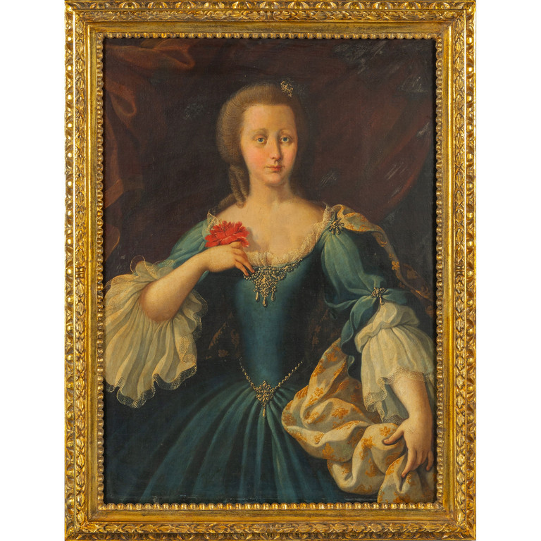 Scuola veneziana sec.XVIII 'Ritratto di dama con fiore in mano' olio
