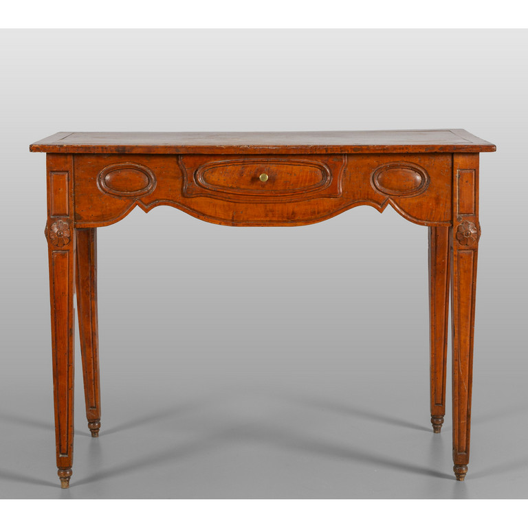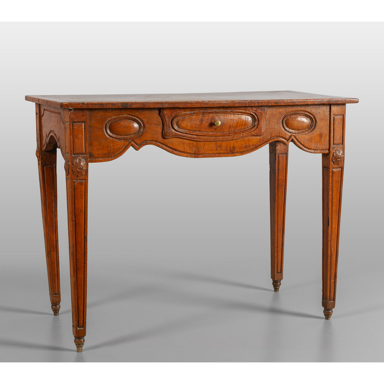 Consolina in noce intagliato cassetto nella fascia fine sec.XVIII