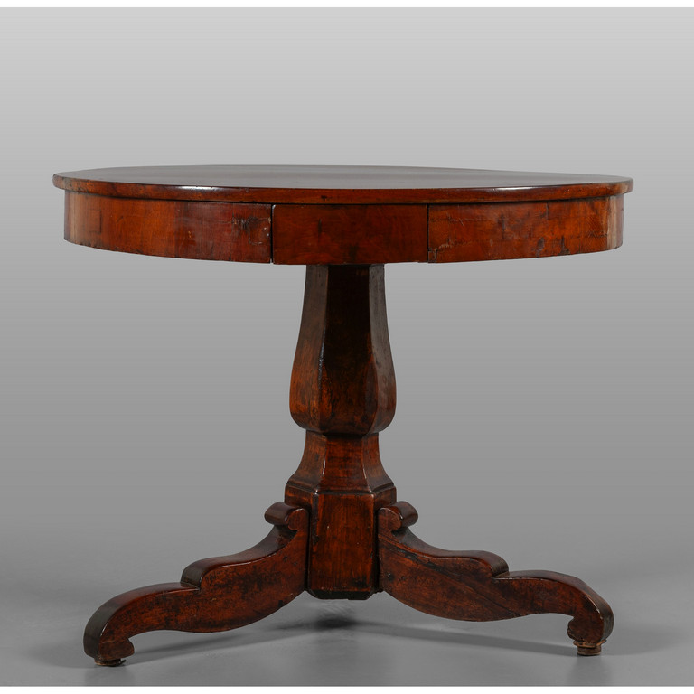 Tavolo in noce di forma rotonda cassetto nella fascia sec.XIX