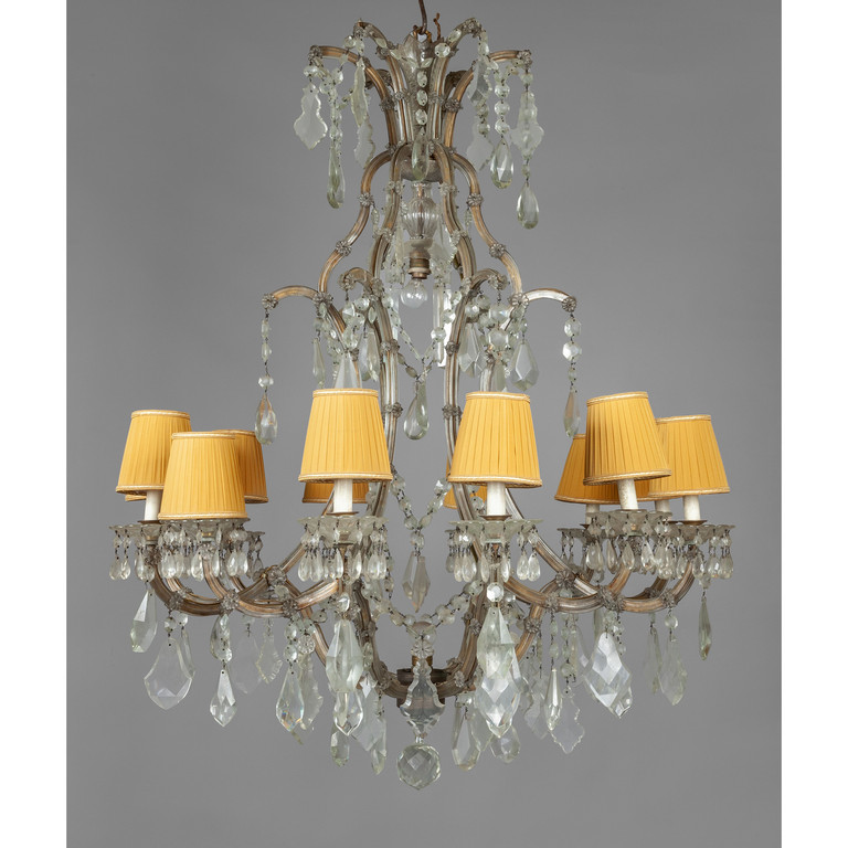 Lampadario Maria Teresa a dodici luci in metallo e vetro sec.XIX
