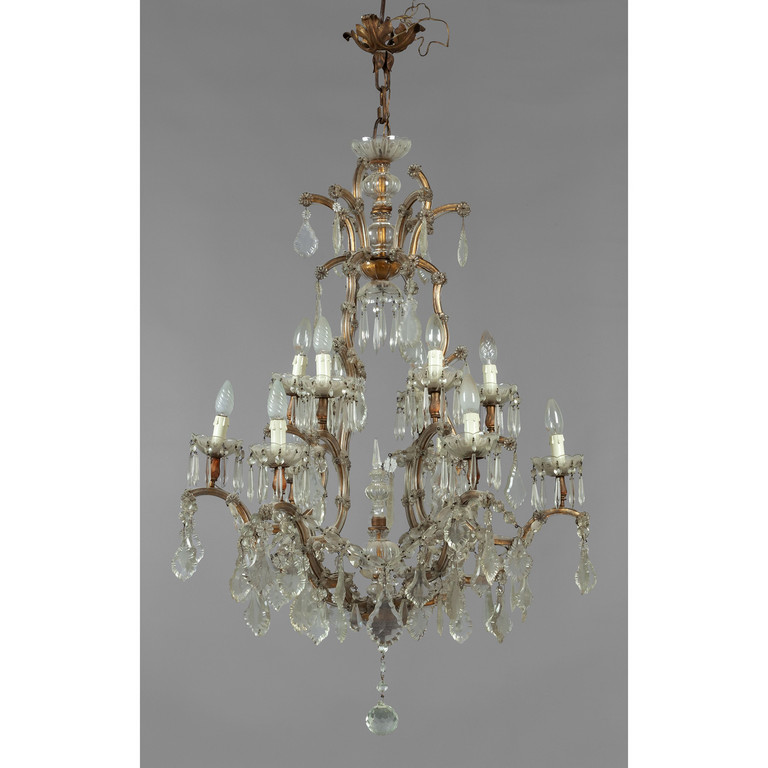 Lampadario Maria Teresa in metallo e vetro a dodici luci sec.XIX