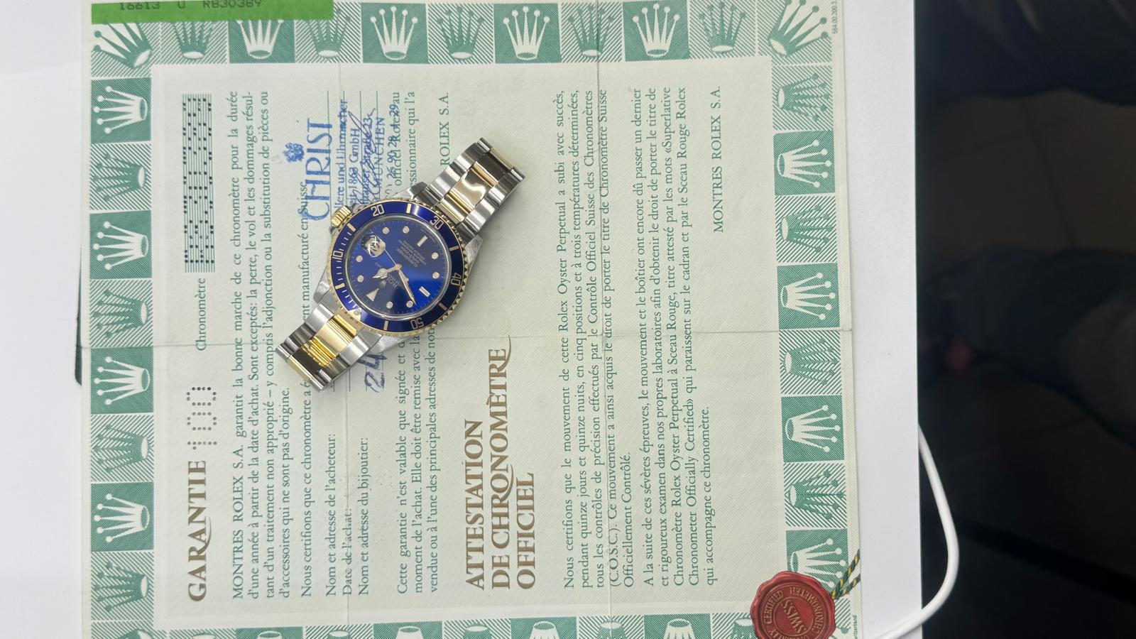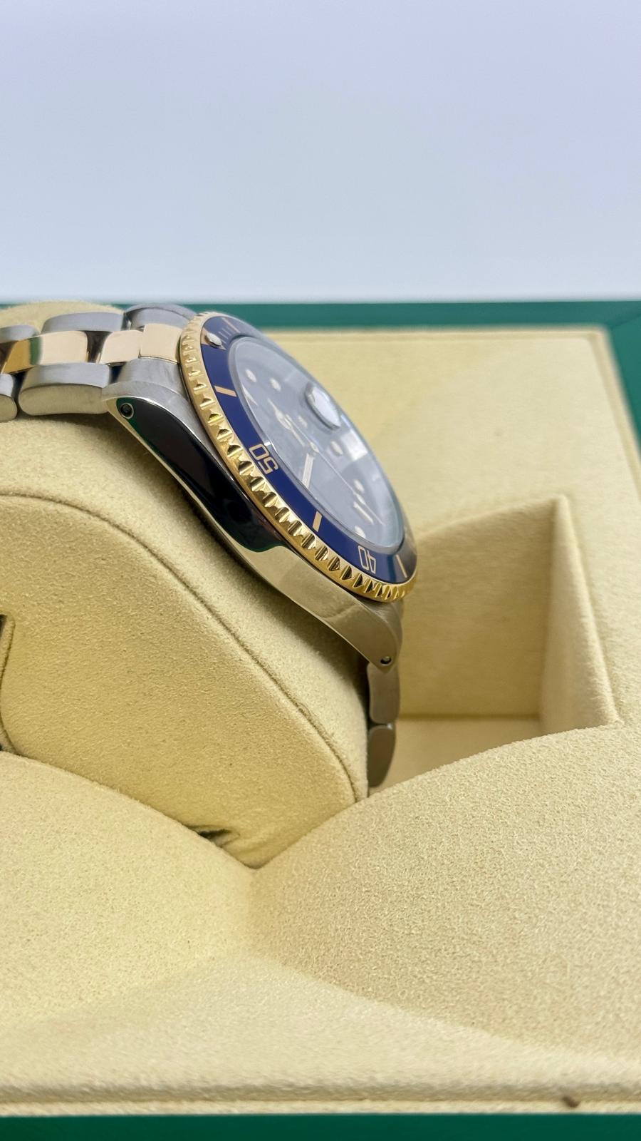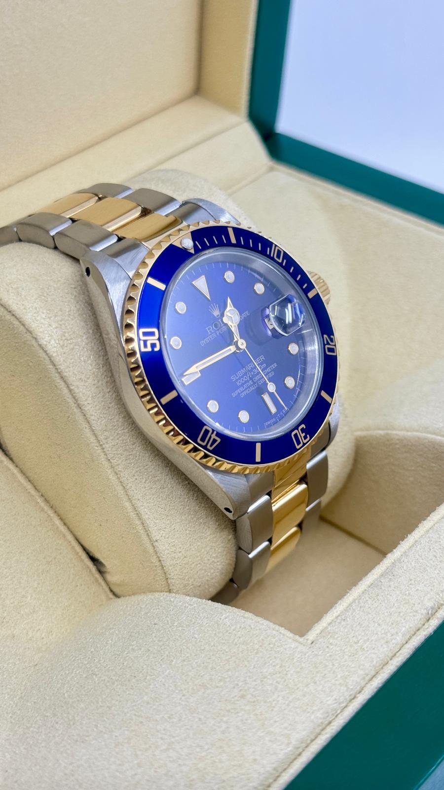 Marca Rolex Modello (Orologio) Submariner Date Numero di referenza 16613 Carica Automatico Materiale della cassa Oro/Acciaio Materiale cinturino Oro/acciaio Anno di produzione 1988 Condizione Ottimo (di seconda mano, segni di usura assenti o appena visibili) Corredo documenti originali Rolex, no box Cassa Materiale della cassa Oro/Acciaio Diametro 40 mm Impermeabile 30 ATM Materiale lunetta Oro giallo Vetro Vetro zaffiro Quadrante Blu Numeri sul quadrante Senza numeri Cinturino Materiale cinturino Oro/acciaio Colore cinturino Oro/acciaio Chiusura Déployante