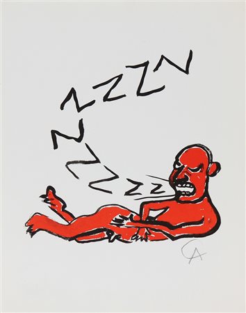 CALDER ALEXANDER (1898 - 1976) Senza titolo. . Fotolitografia. Cm 23,00 x 30,00. Esemplare 3287. Riproduzione fotolitografica dell' opera originale "Z" eseguita per la serie "L 'alfabeto " di Bolaffi arte. Firma originale in basso a matita.Ed, BolaffiArte. Anni '70. Timbro a secco BolaffiArte in basso a sinistra. Tiratura al retro.