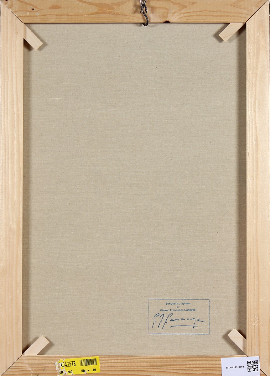GONZAGA GIOVAN FRANCESCO (1921 - 2007) Senza Titolo. Serigrafia su tela. Cm 50,00 x 70,00. 105/300. Firma in basso a destra. Al retro firma e cartiglio di Giovan Francesco Gonzaga.
