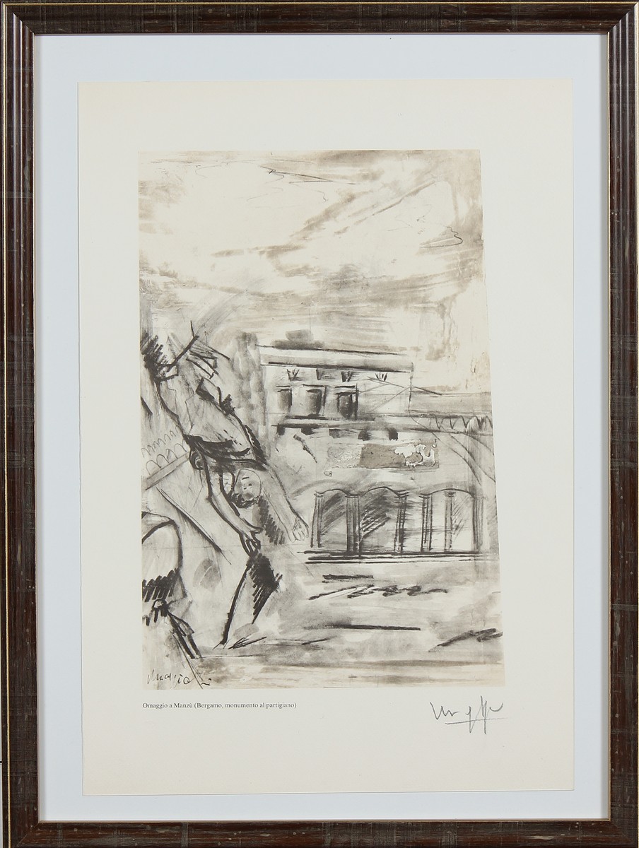 MAGGIONI PIERO (1931 - 1995) Omaggio a Manzù. Litografia. Cm 47,00 x 33,00. Firmato in basso a sinistra. Cornice presente