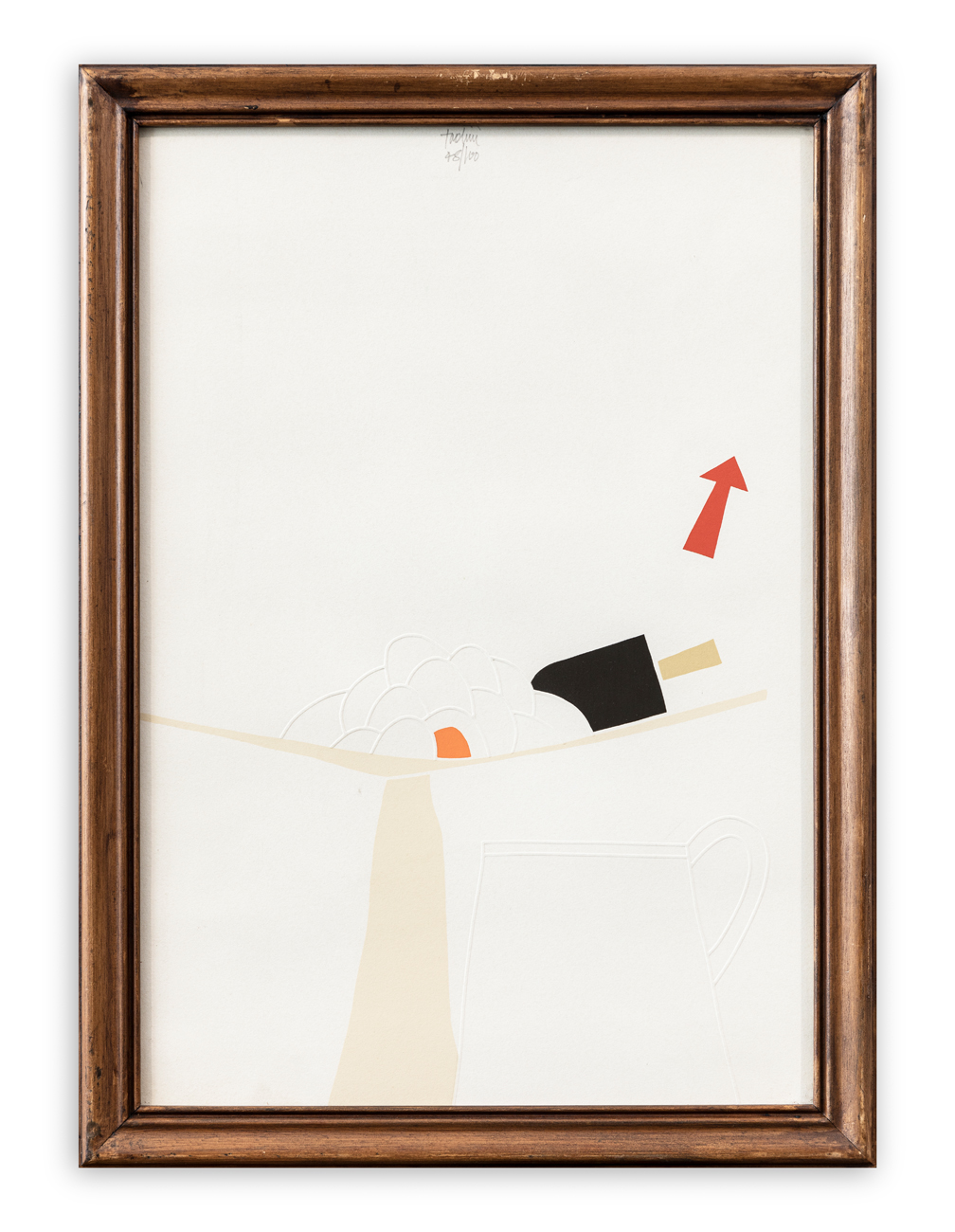 Opera originariamente parte di una cartella contenente 3 serigrafie sciolte con rilievi a secco di Emilio Tadini