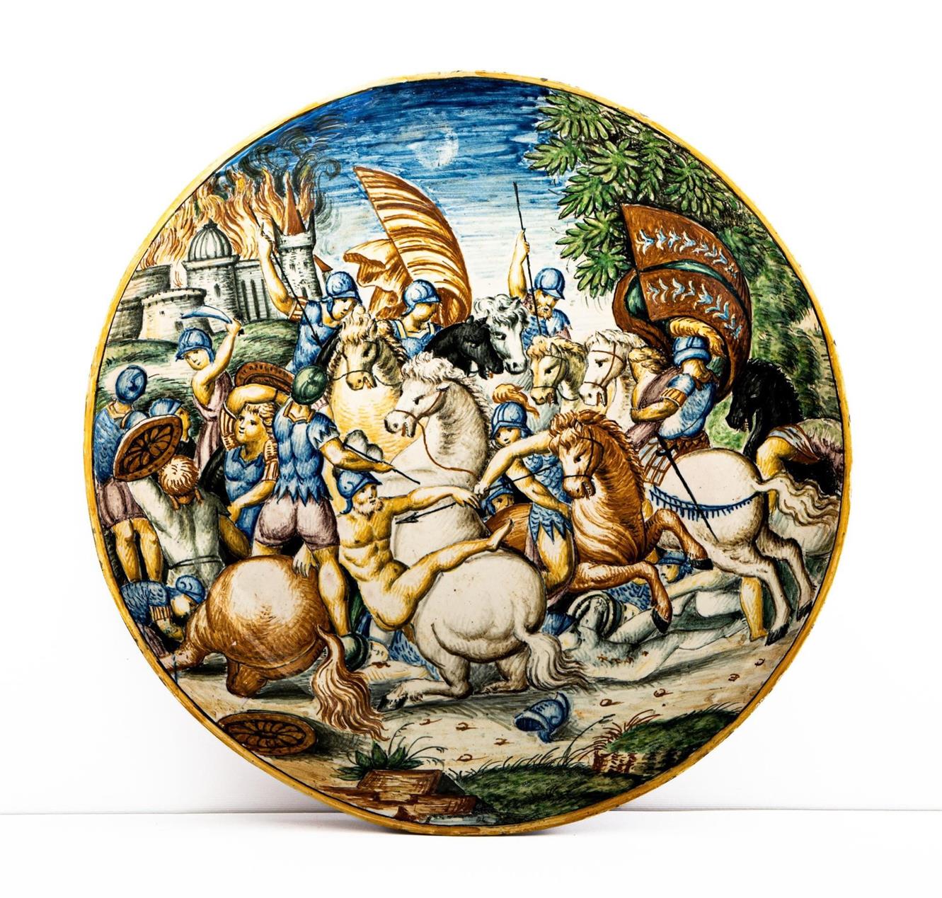 Piatto raffigurante l' Incendio di Troia Manifattura Molaroni, Pesaro fine del XIX secolo