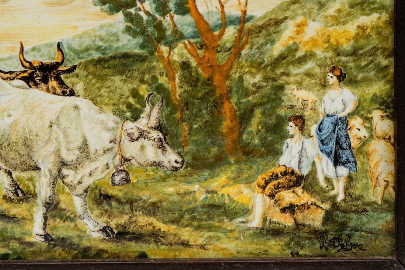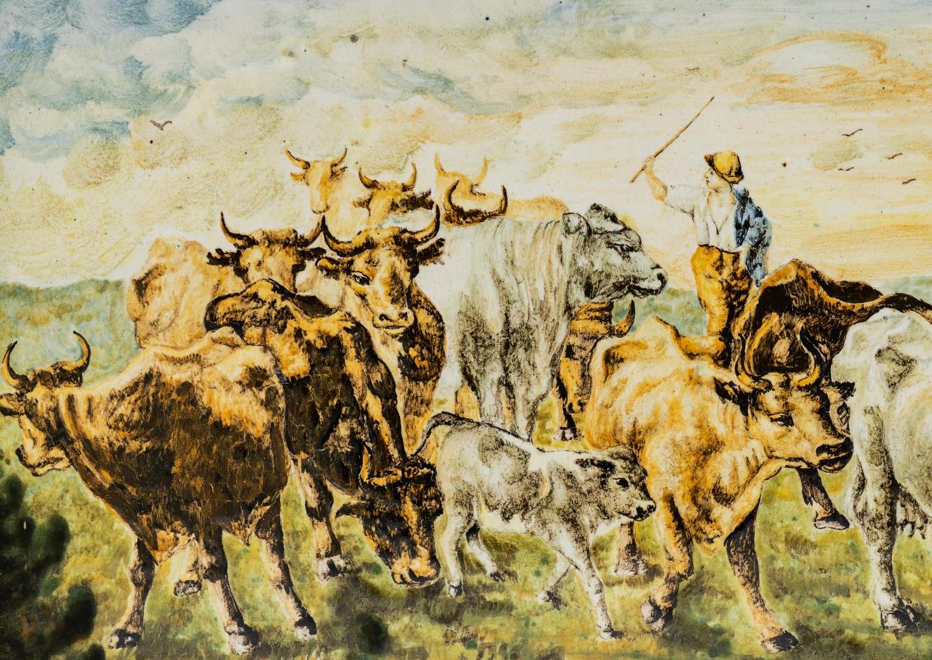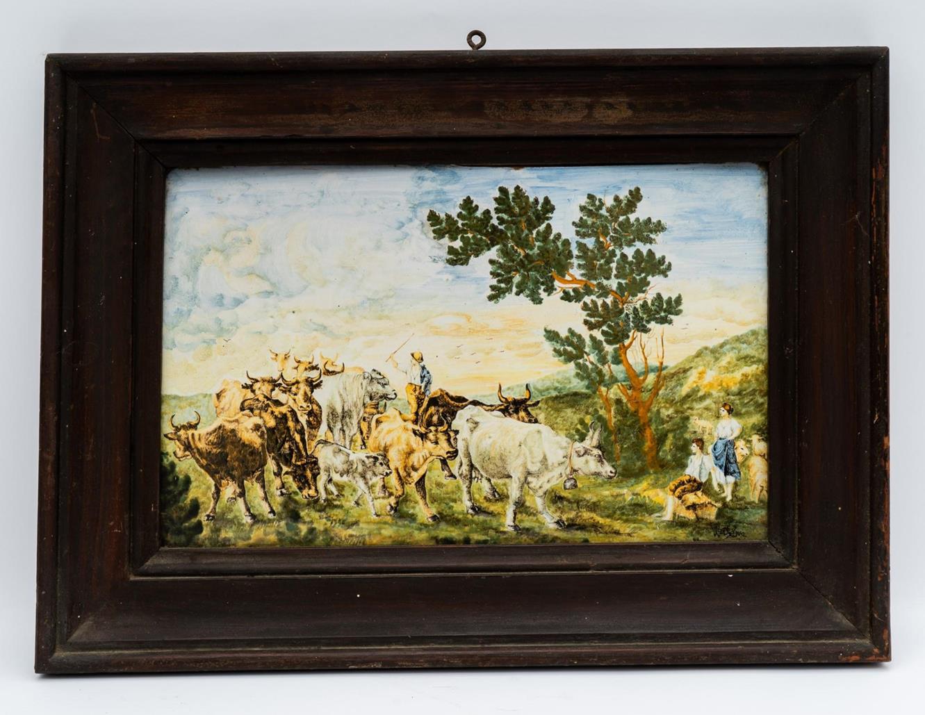 Mattonella maiolicata raffigurante armenti e greggi al pascolo Vincenzo Volpe