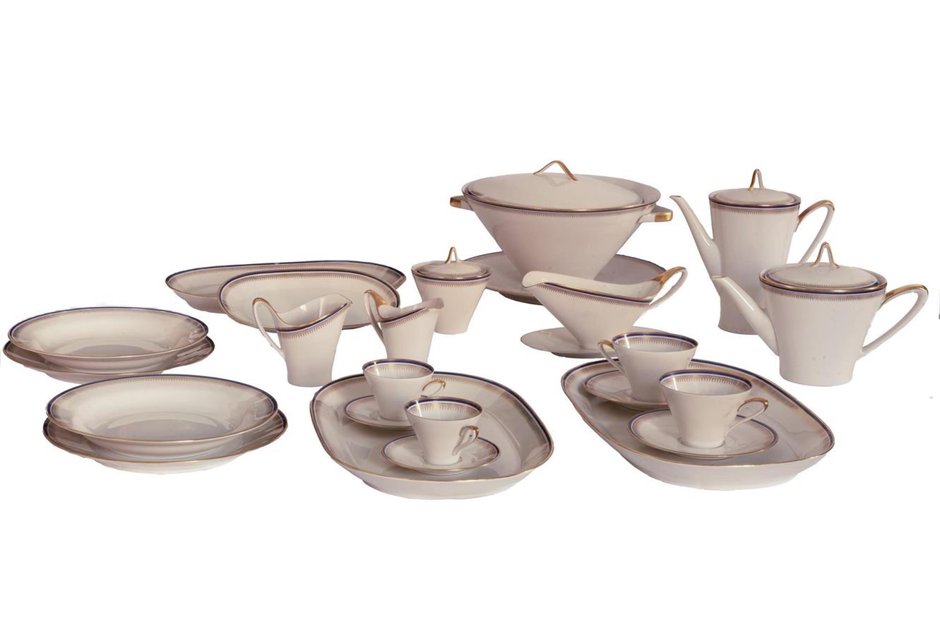 Lot 78 | Servizio Bavaria in porcellana bianca con profili blu ed oro